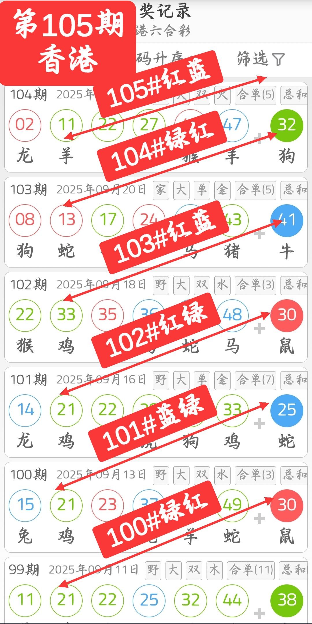 根据最近100期的前六位正码出现的单双(奇偶分布以3:3最常见,占比约32%,最近期为3:3)、前后肖(3:3最常见,占比约34%,最近期为3:3)、天地肖(4:2和2:4交替常见,最近期为5:1偏天肖,可能补偿地肖)、数字之间规律(高频数字如32、45出现18次,整体热号集中20-40区间)和色波(红蓝各约2-3个最常见,最近期红2、蓝3、绿1,可能平衡绿波)等分析,第104期最有可能出现的特码为11,13,15,19,21,22,23,25,27,29,32,34,35,44,45,49。
